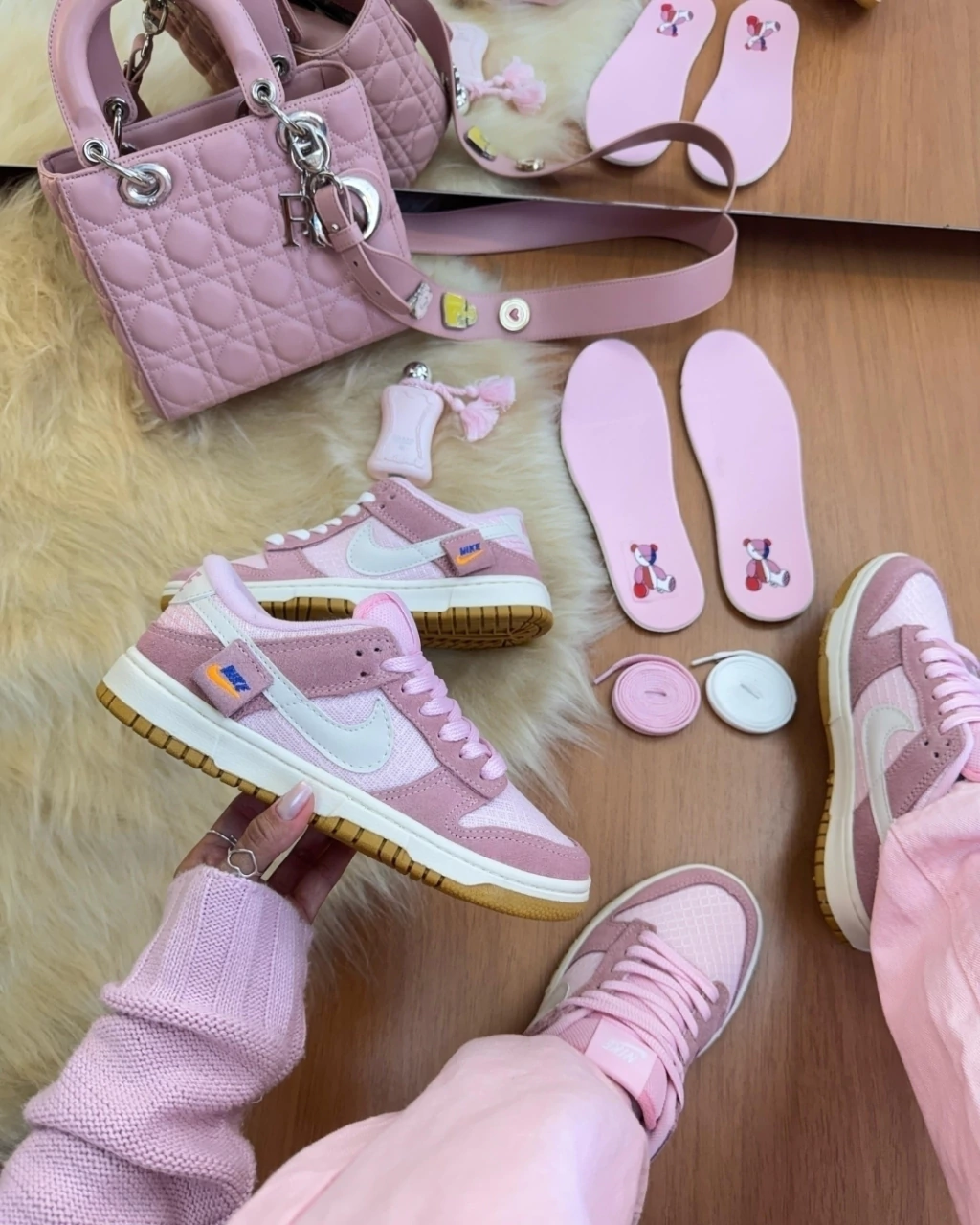 Charmoso e cheio de personalidade, o Dunk Low Teddy Bear combina tons suaves de rosa com detalhes que remetem ao universo lúdico. Seu cabedal mescla camurça e tecido para um visual aconchegante e estiloso, enquanto o solado caramelo adiciona um toque retrô. Acompanha palmilhas personalizadas com estampa de ursinho e dois pares de cadarços para variar o look. Ideal para quem busca conforto, fofura e autenticidade em um único tênis.