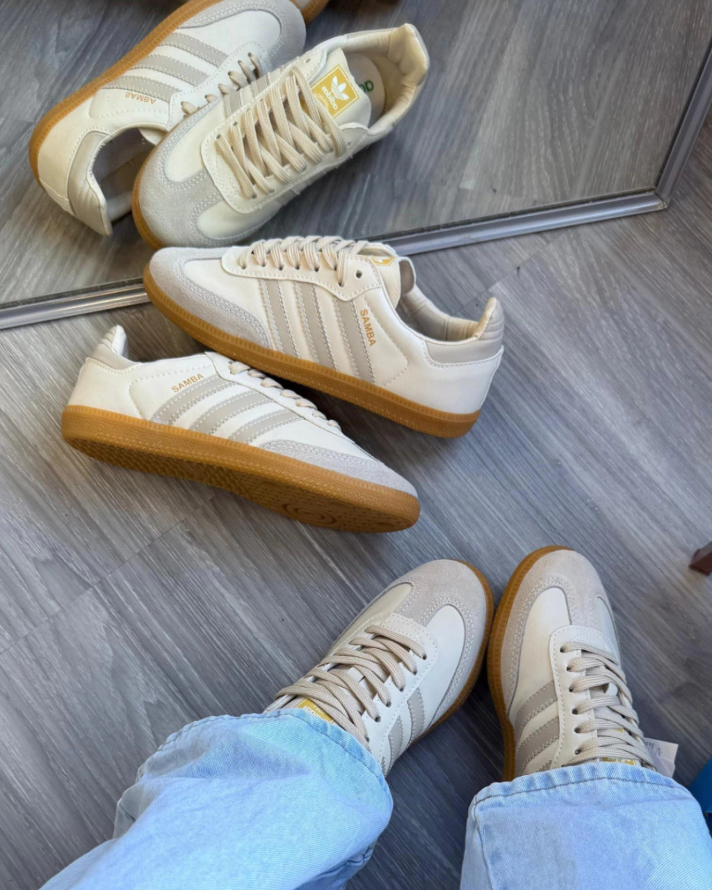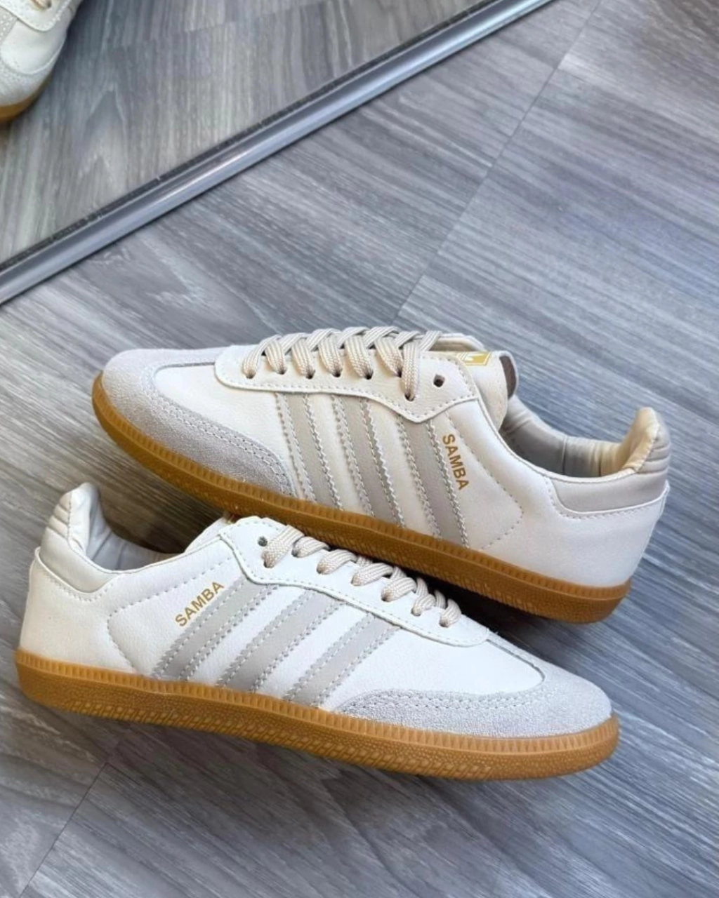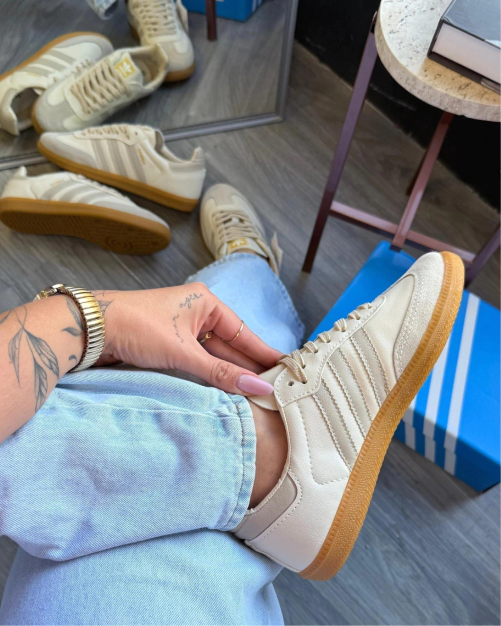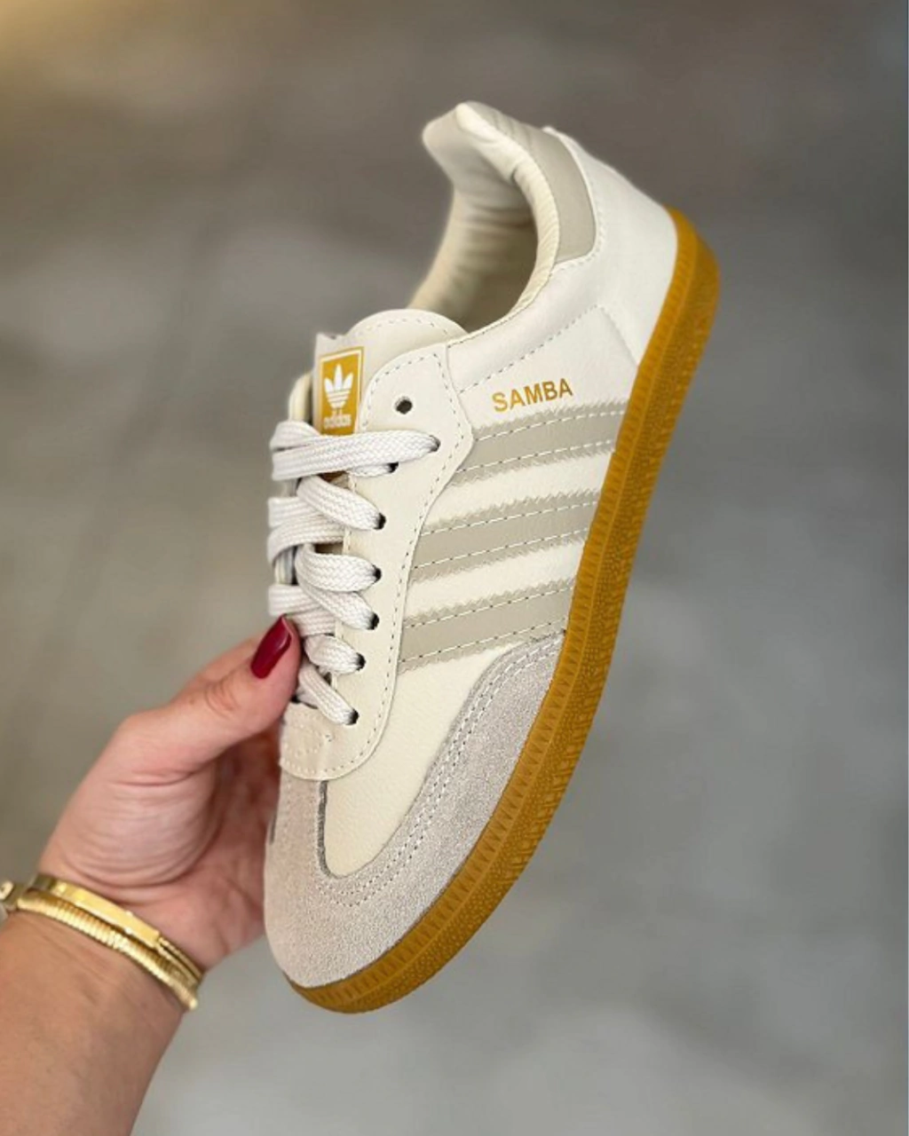 Tênis Samba Off / Bege com Couro Natural – Clássico, Atemporal e Sofisticado