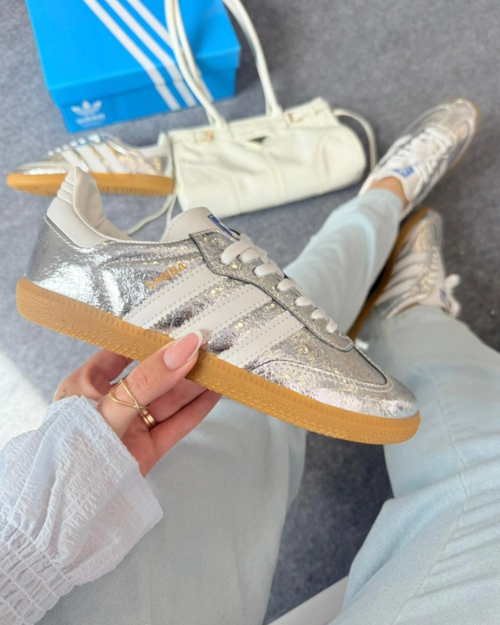 Com design clássico e acabamento metalizado, este modelo entrega estilo e conforto em cada passo.