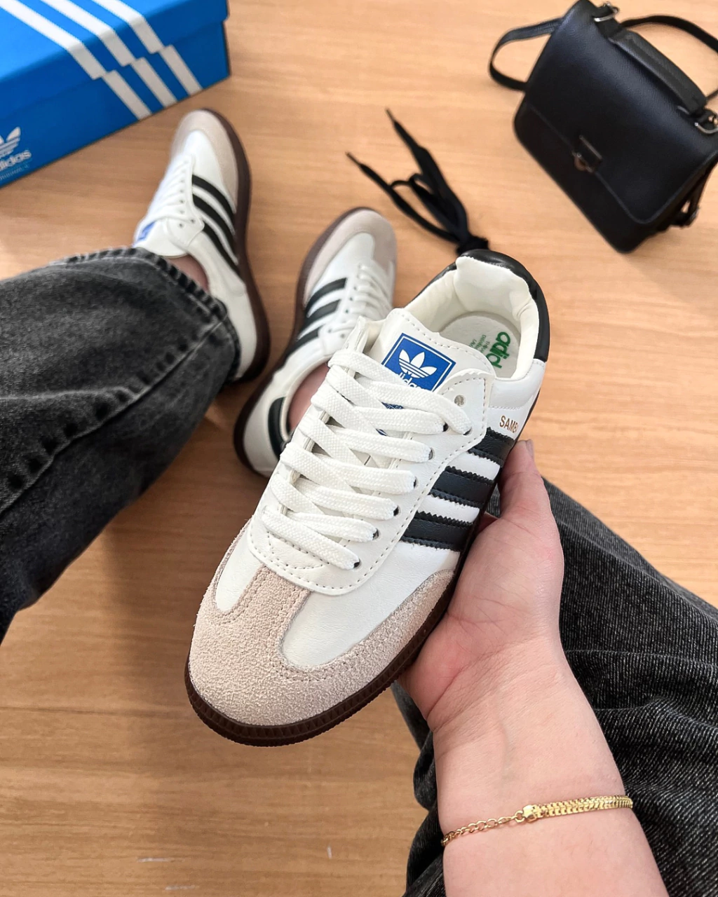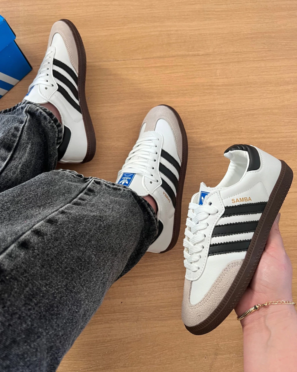 Conheça o Samba Tradicional, o tênis que traz o equilíbrio perfeito entre o estilo clássico e a modernidade. Com seu design retrô em branco com listras pretas, ele é ideal para quem busca um visual autêntico, versátil e cheio de personalidade.